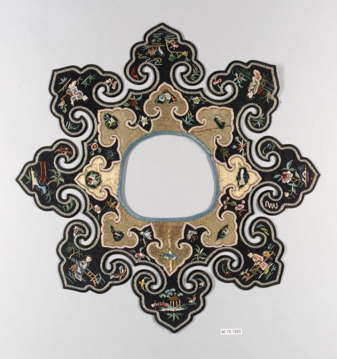 Автор: Хатка Бобра云肩 /yun jian/ юньцзянь (юньцзиень) (буквально "облако на плечах") (облачный воротник) - маленькая пелерина, традиционно вырезанная по форме облачного орнамента, была распространена в эпоху Мин и Цин (с 14 века).