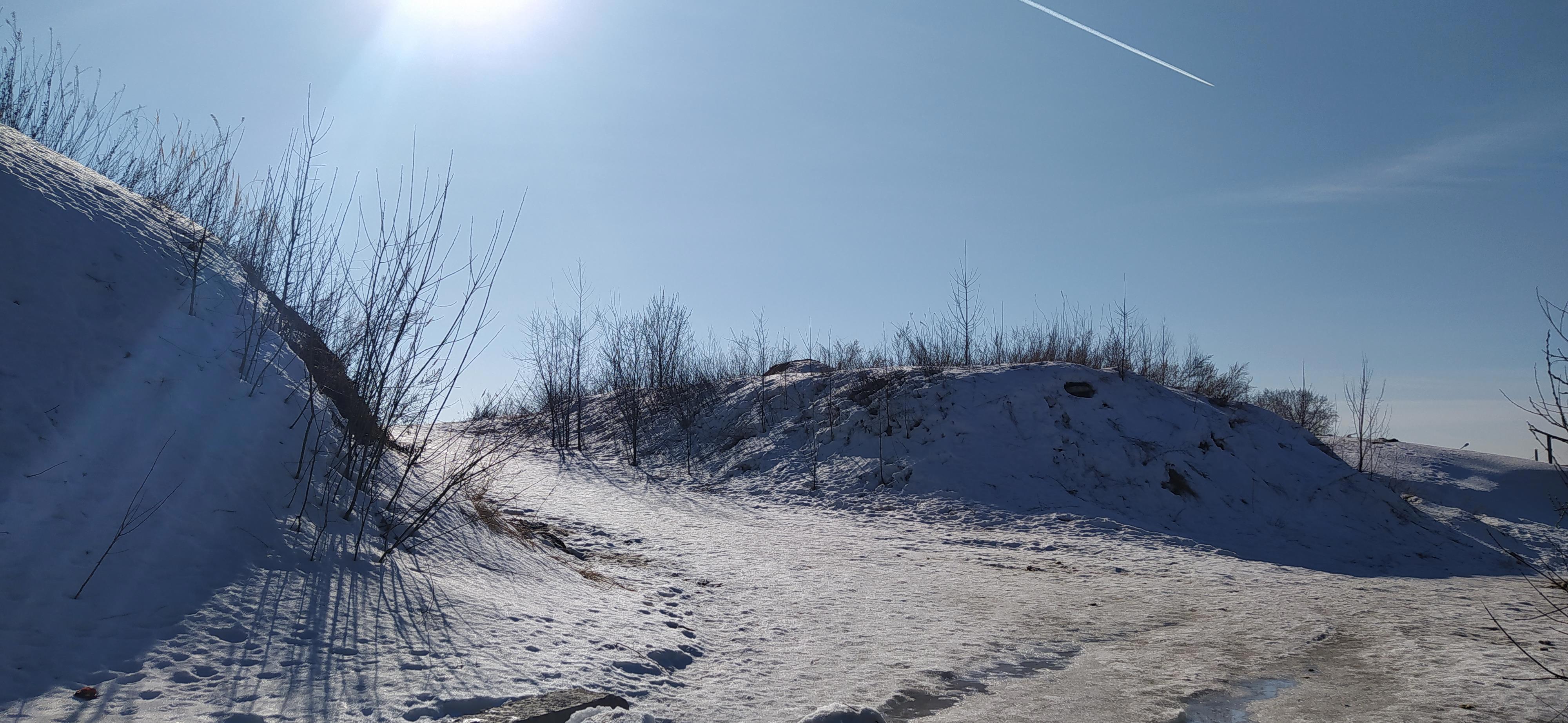 Я уже снимала это необычное место в теплое время года. А недавно ехала мимо и решила, что допустила большое упущение, не полазив там зимой. Все собиралась... и дотянула до весны. Впрочем, может и оно и к лучшему, ведь белый снег и голая черная земля создают выгодный контраст
