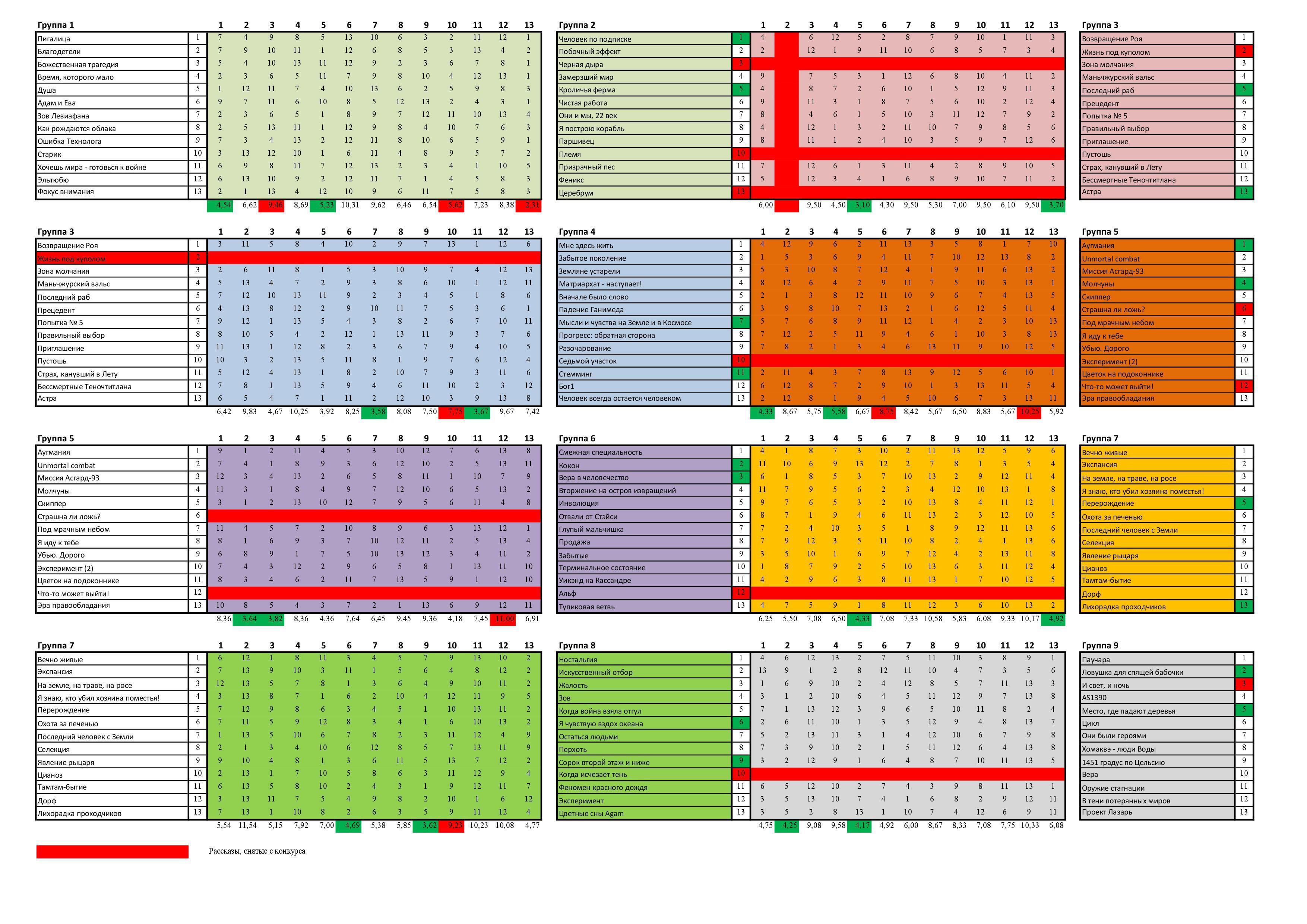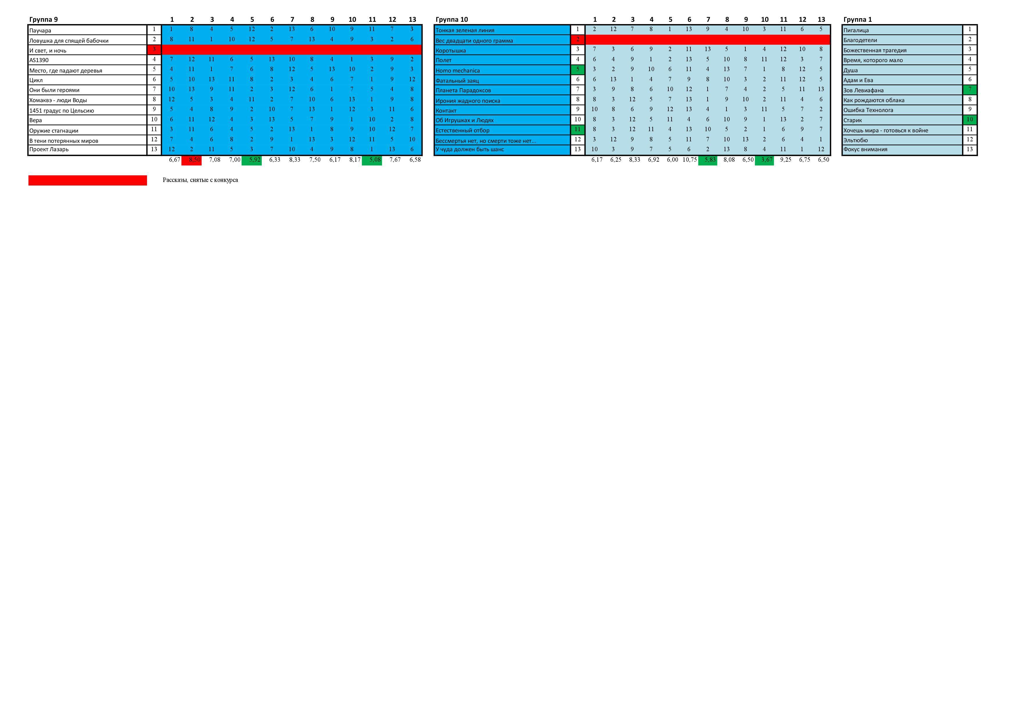 Группы и относящиеся к ним оценки окрашены в одинаковые цвета.