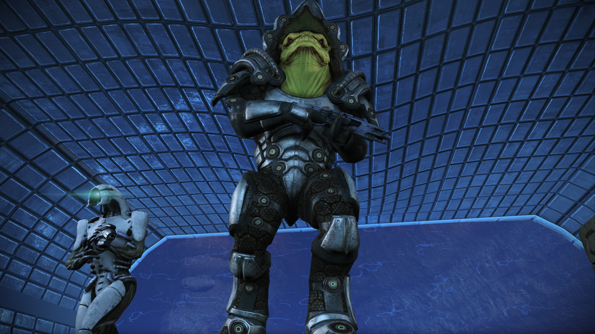 За доктором пришел наемник кроган, что привело к довольно посредственной перестрелке, в которой мои соратники застыли на месте, а мне пришлось отстреливаться в полном одиночестве.