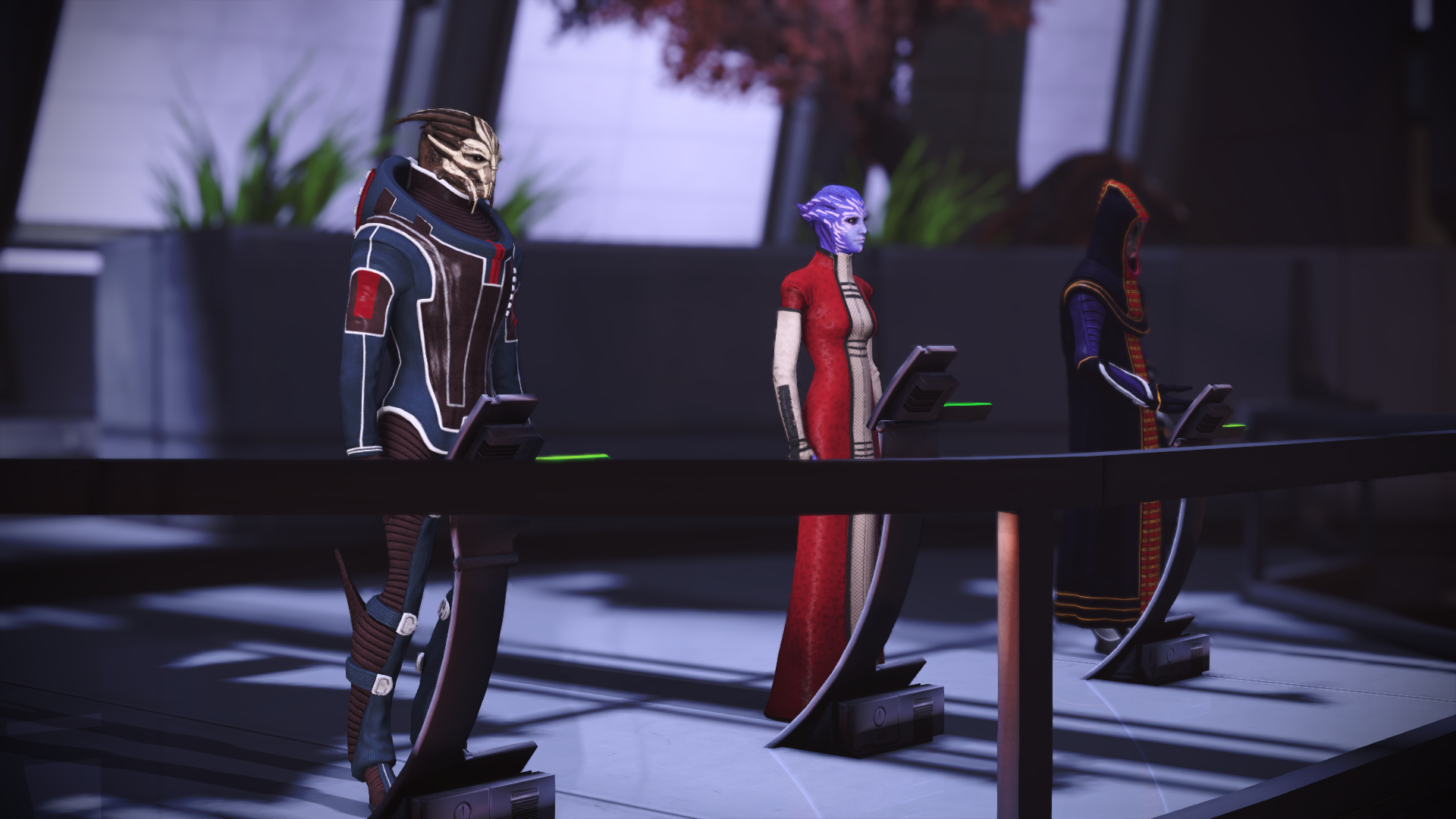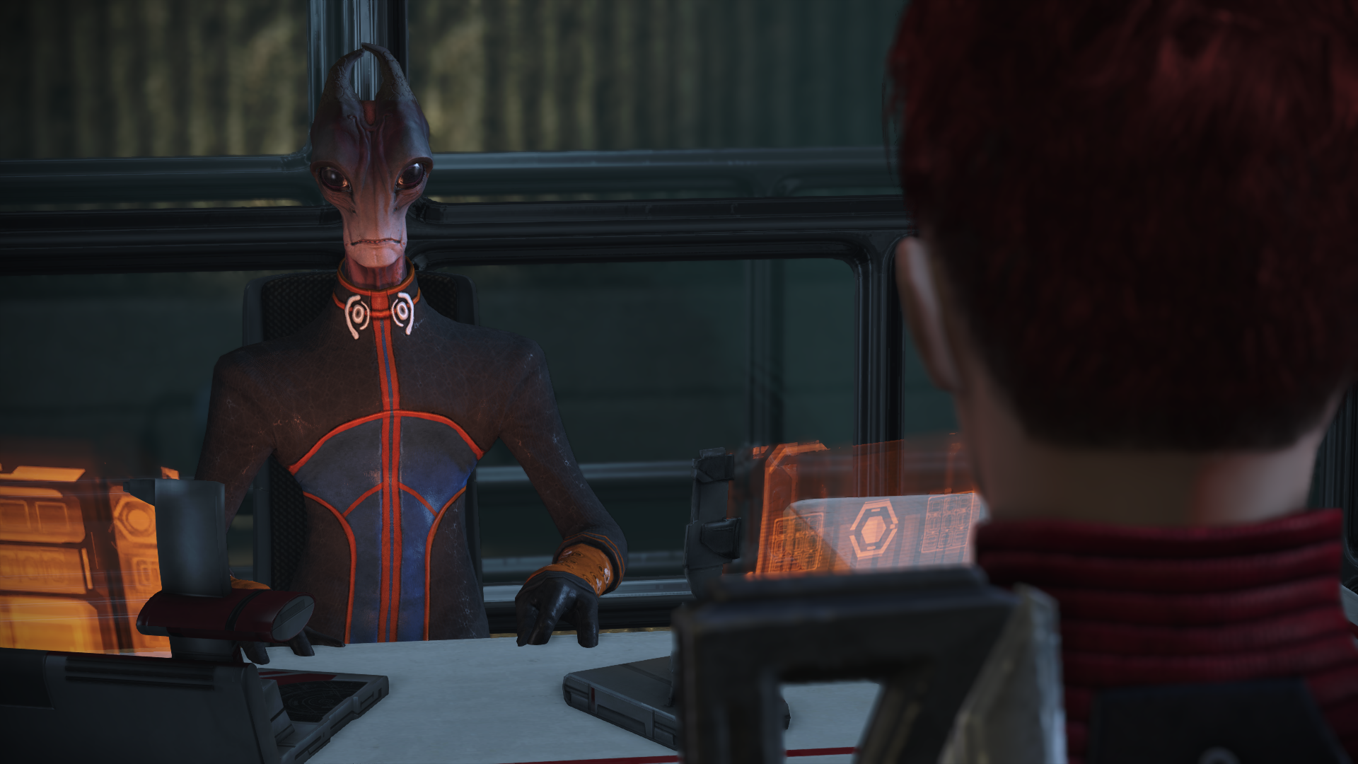 После миссии проходит совещание всех членов команды, на котором становится ясно две вещи. Во-первых, за доктором охотится мать, Матриарх Бенезия. Во-вторых, в команду вступает ещё один инопланетянин. Ну и приятным дополнением становятся отчеты, которые капитан Шепард пишет после каждой миссии. Следить за ними одно наслаждение. Особенно забавляет моменты, когда можно вызвать членов совета, а потом отключить связь. Делаю так постоянно
