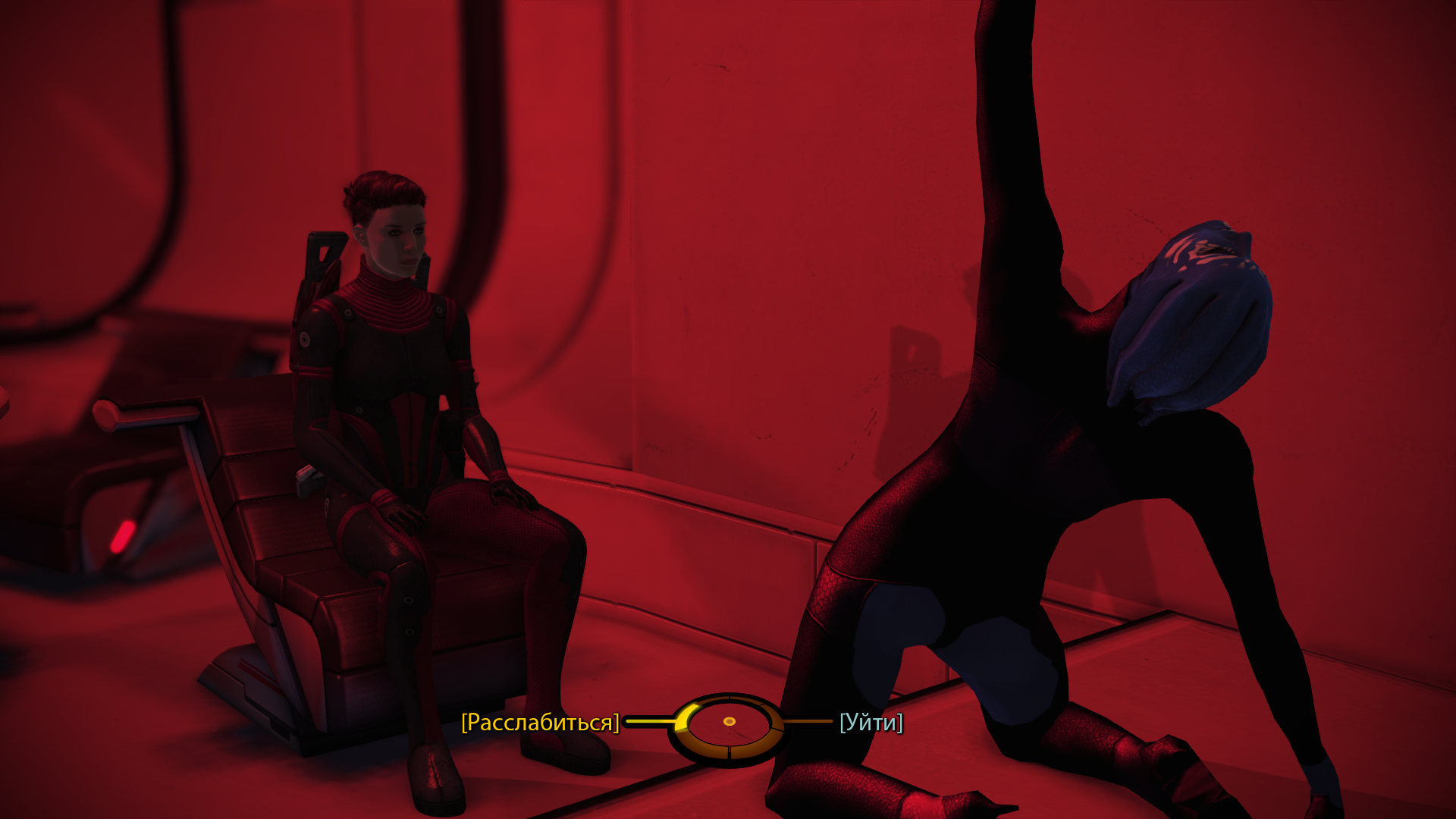 Во-вторых, я проходила трилогию несколько раз, поэтому наизусть выучила расположение противников и знаю, на что влияют ответы в диалогах. Поэтому я буду отыгрывать роль "Злобной сучки", которая не прочь переспать с азари