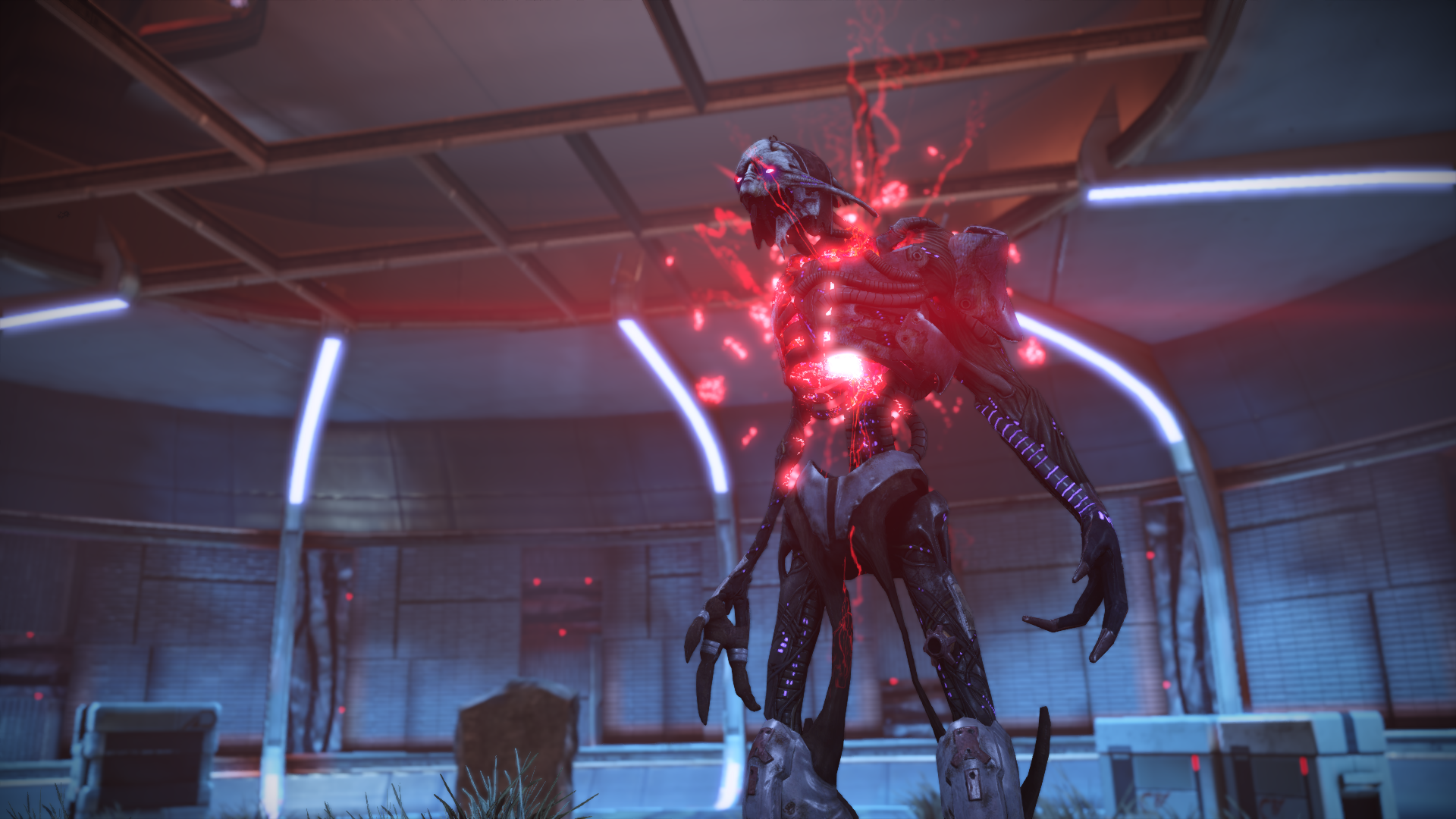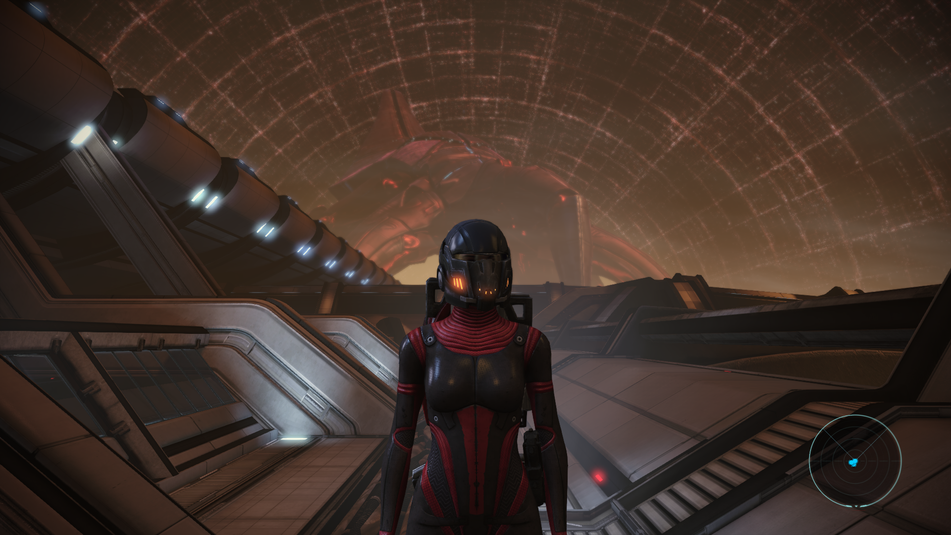 Короче, Шепард закончила ремонтные работы на Вершине 15, добралась до станции Расселина, положила штабелями личную охрану Матриарха Бенезии и встретилась лицом к лицу с противником.