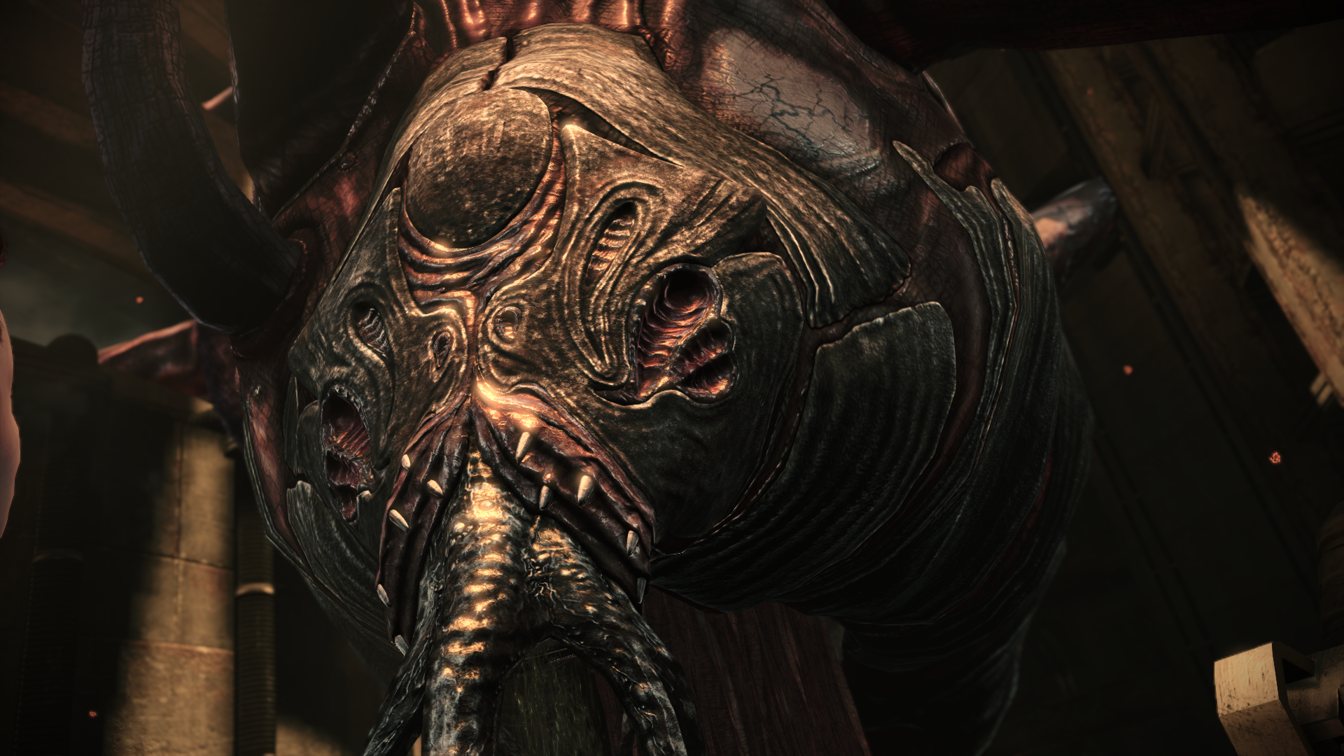 Ну а Шепард встречается лицом к лицу с угрозой, из-за которой совет и саларианцы вывели расу кроганов.