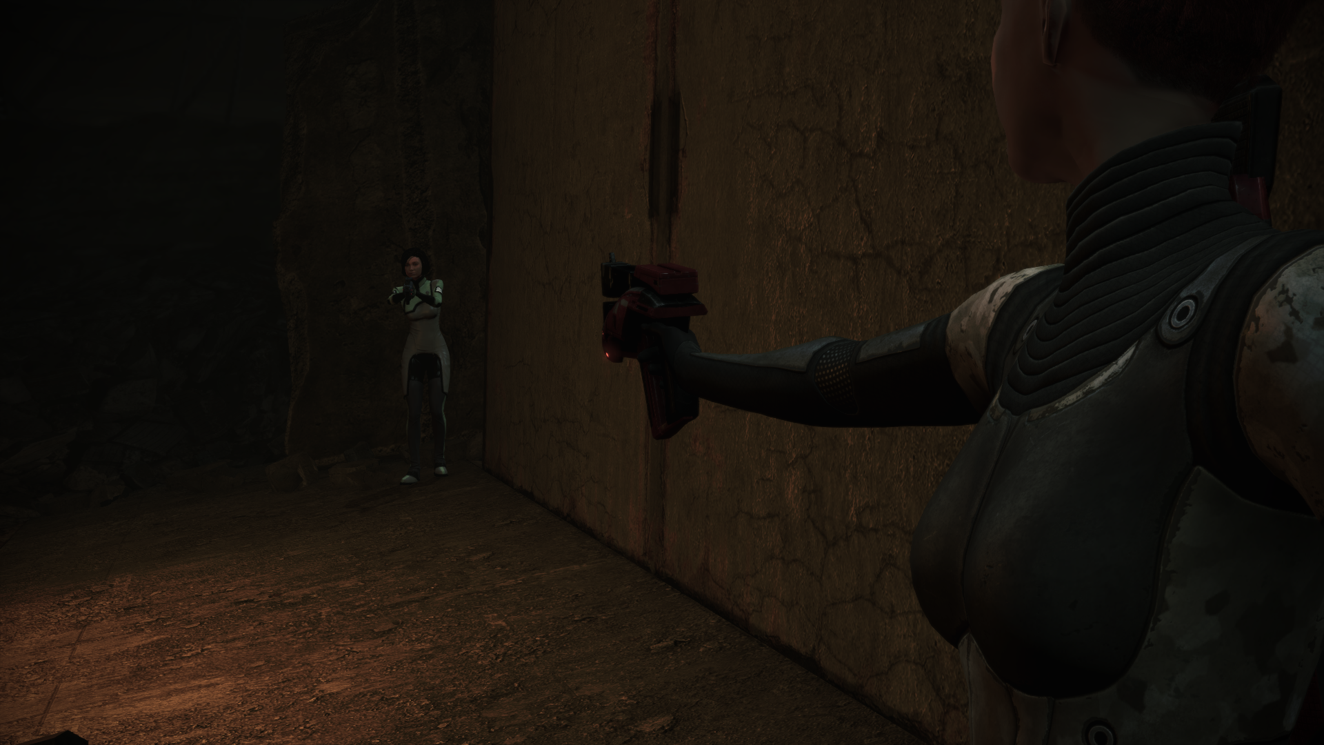 Отстреливая недоброжелателей и выполняя три побочные миссии по улучшению качества жизни колонии, я получила немного опыта и словила баг. Мои спутники, сукины дети, застыли на месте и перестали выполнять команды. Они перемещаются ко мне за спину только во время диалогов. Если первую локацию мне удалось зачистить в одиночку, что было весьма проблематично, то вот дальше пришлось выходить из игры.
