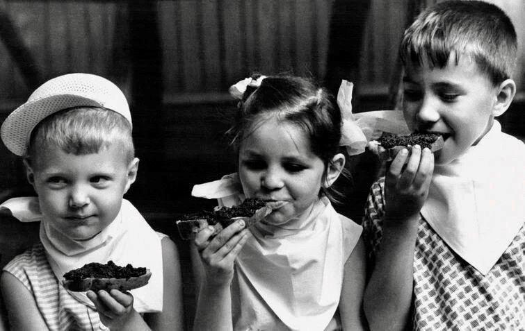 Июль 1965 года, Москва. Трое детей едят бутерброды с икрой в детском саду.