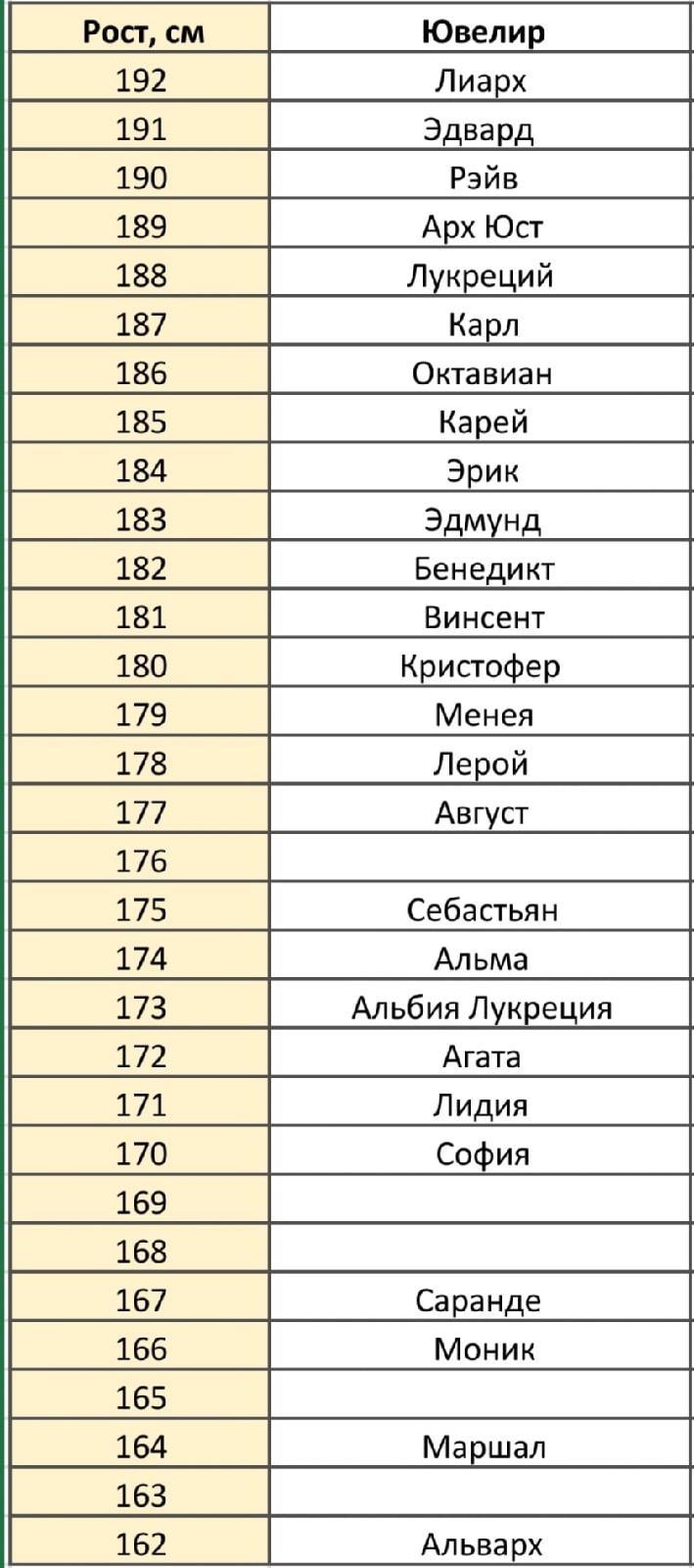 Рост персонажей