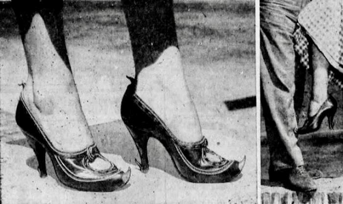 Середина 1950-х годов, Италия. В Италии, особенно в Риме, продавали «туфли для самообороны» со шпорами на пятке и носке, чтобы отбиваться от извращенцев.