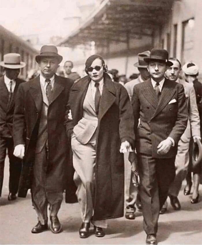 1933 год, Париж. Марлен Дитрих задерживают на вокзале за нарушение запрета на ношение брюк женщинами.