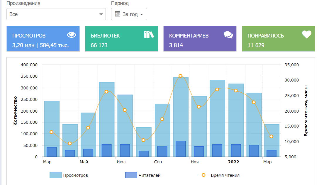 Общее время чтения моих книг на сайте: 227 278 часов, или 9 470 дней, или 26 лет.