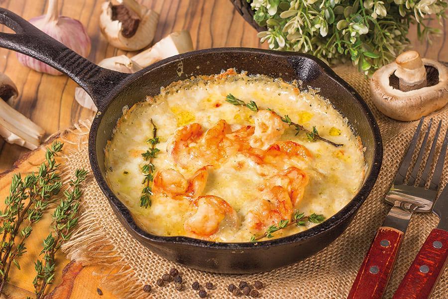 Жульенницы и кокотницы нам не нужны, у нас же похмельная, жирная закуска. От того, переливаем всё в посудину для духовки, на что глаз ляжет, хотите противень, хотите стекло. Засыпаем всё тёртым сыром, - больше сыра, больше, ещё больше! Пойдёт, простой, «российский», отправляем в заранее разогретую духовку, где-то градусов двести, на десять минут.