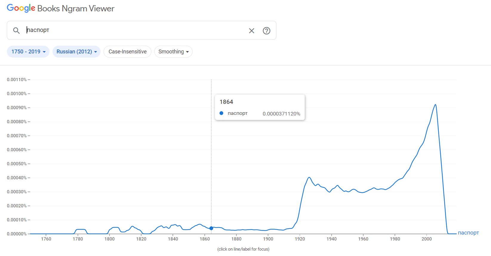 Слово "паспорт" начинают употреблять в России в последней четверти XVIII века. Вероятно, это связано с галломанией, получившей широкое распространение при Екатерине II.