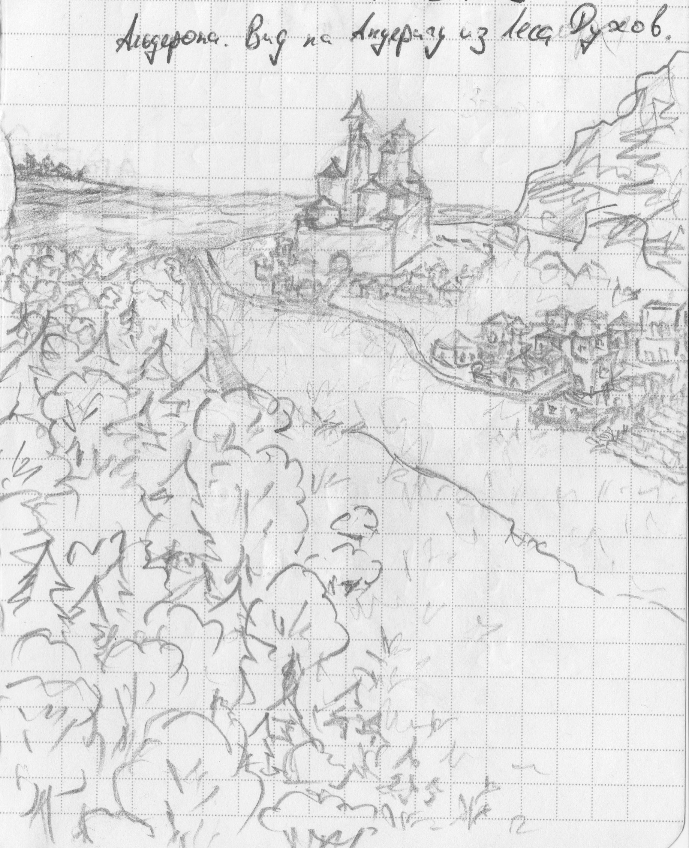Андерига и деревеньки, вид из леса. Из простого. Без духов. Нету их там.