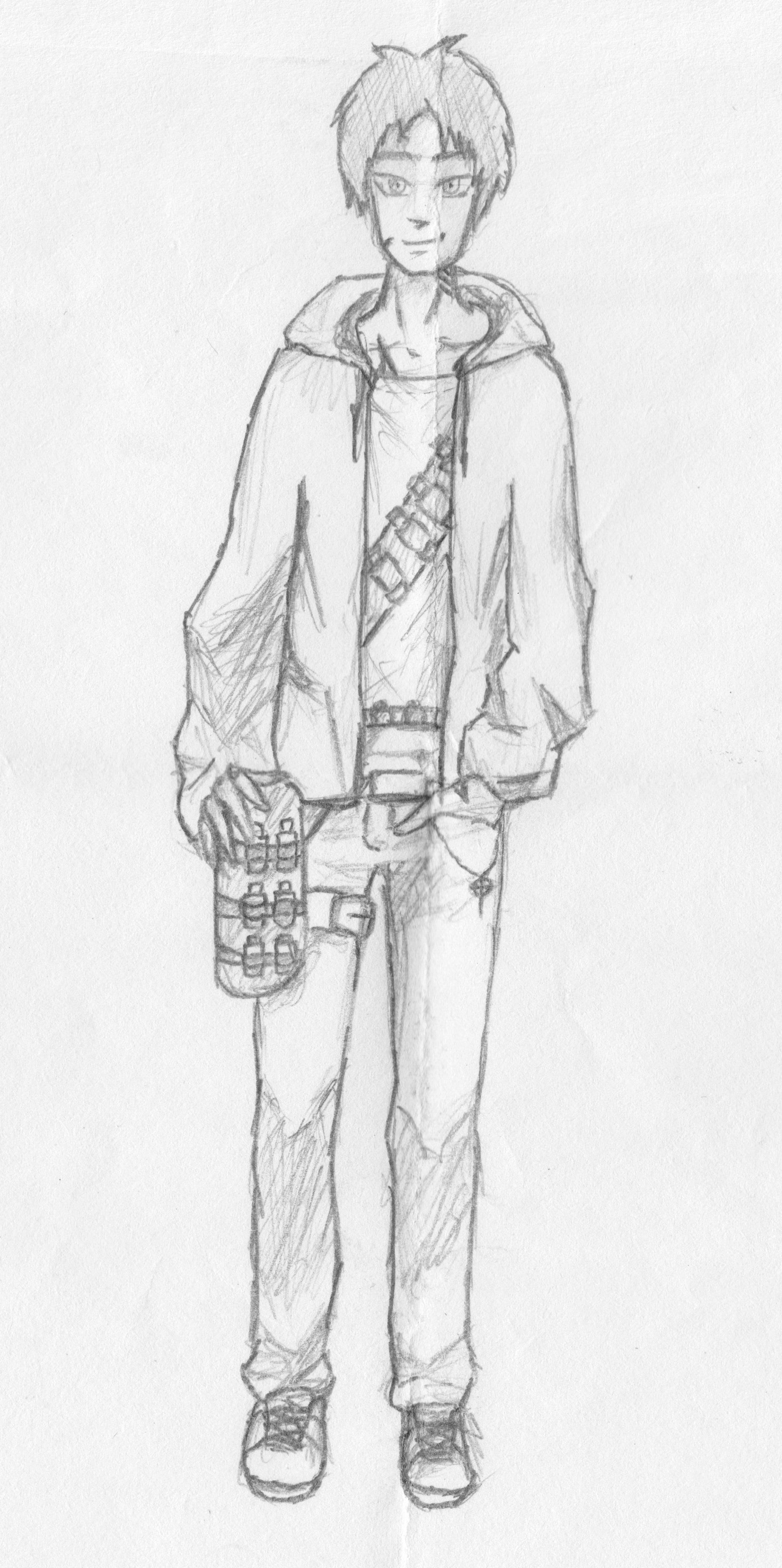 Ну и ГГ - Макс Бистрайд. Или, по крайней мере то, как его видит моя подруга Настя - спасибо ей! Баночки, скляночки, кроссовки, толстовка - все на месте. (Шрамы подрисовывал уже я)
