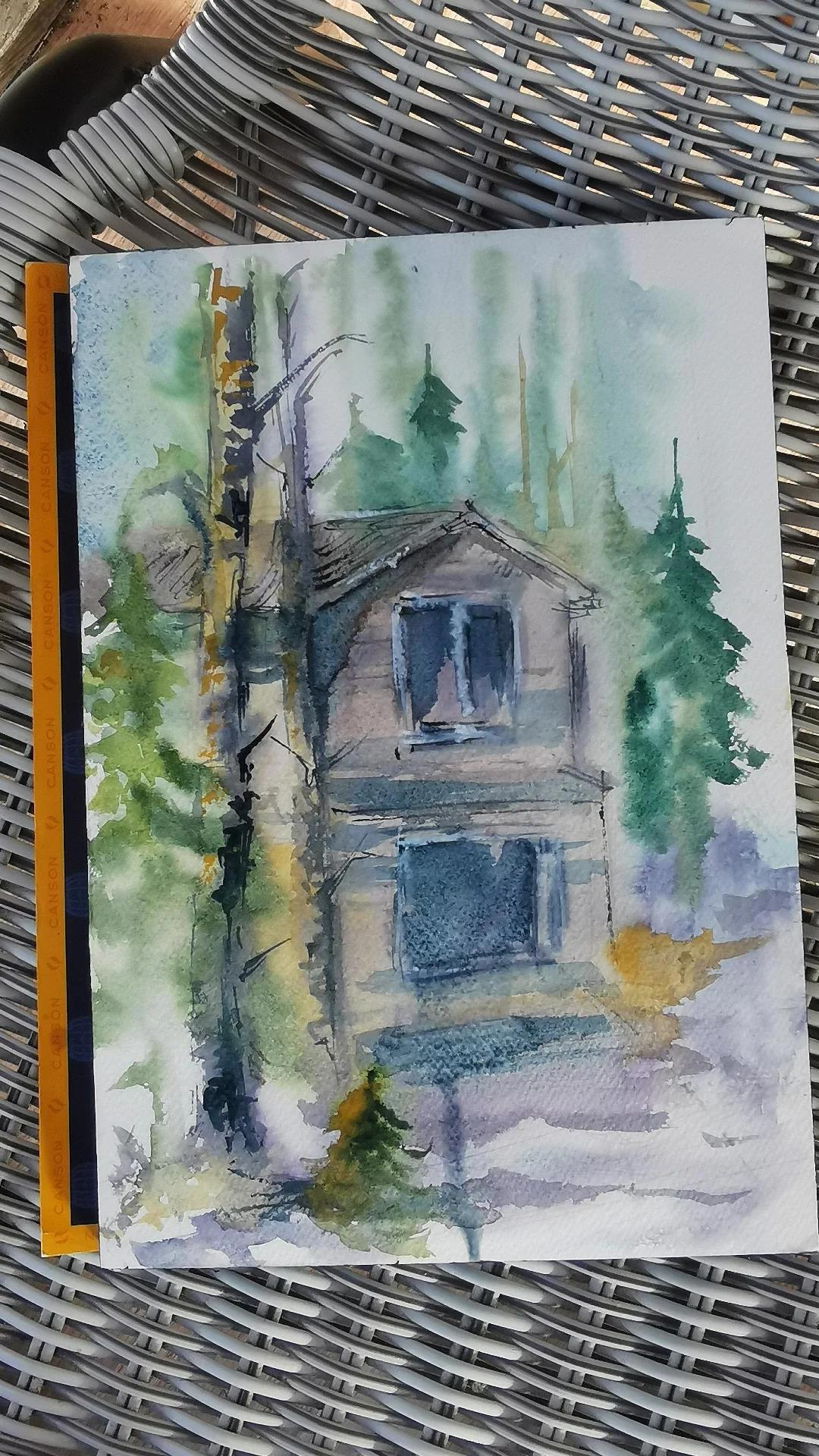 Первый пленэр в этом году :) не полноценный , а просто очень быстрая акварельная зарисовка, все-таки, еще холодно. Но все равно это удтвительно приятно :) Локация - база отдыха "Black Fox", на севере ЛО.