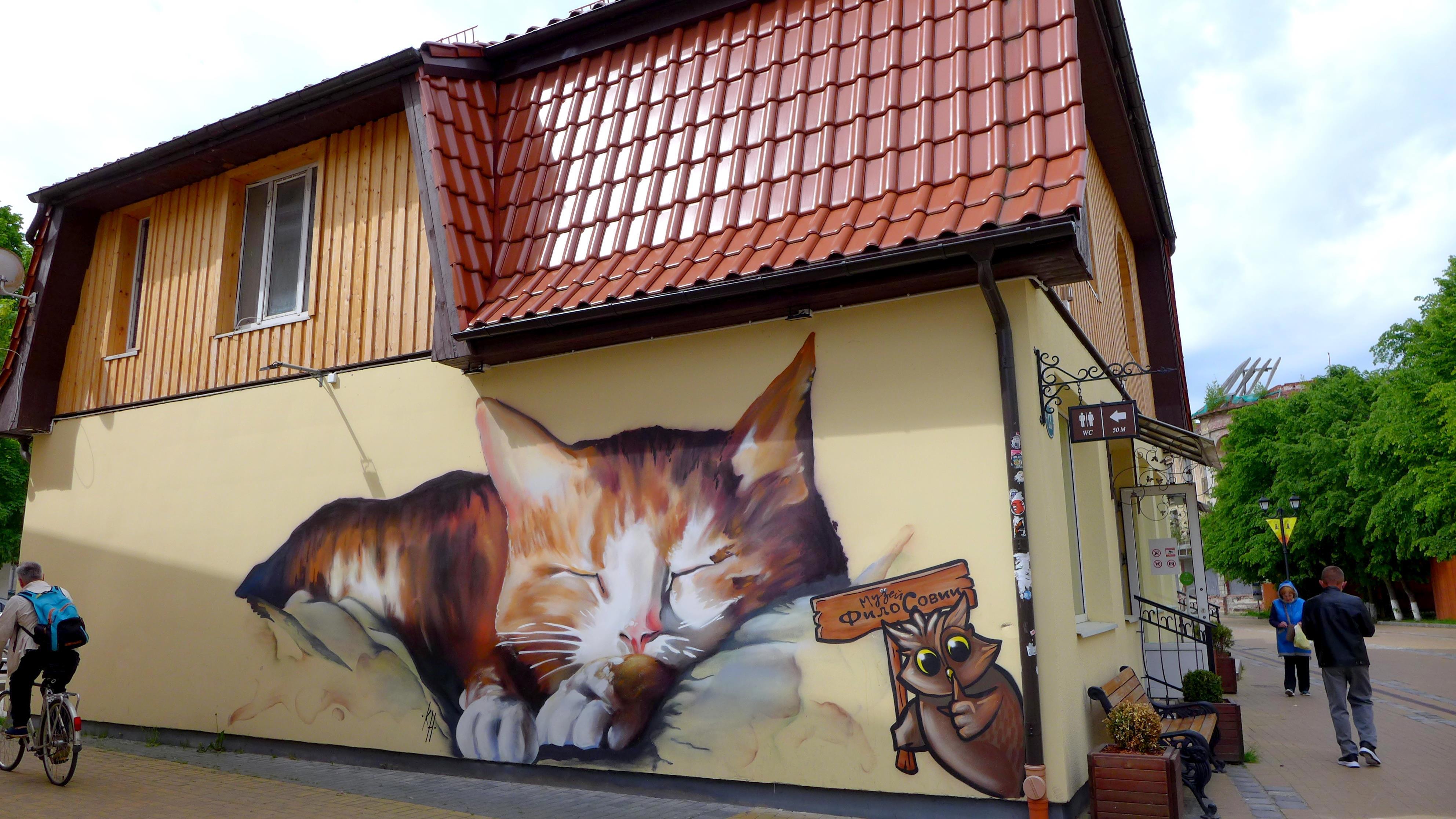 Автор: Наталья ГерценКалининградская область. Немного фотографий городов. Они приятно удивили. Янтарный - широчайшим пляжем, белым песком и прекрасным парком. Вообще и Куршская коса и города на берегу моря (Светлогорск, Зеленоградск) показались интересней самого Калининграда. Символ Зеленоградска - коты. Они везде. И живые и нарисованные