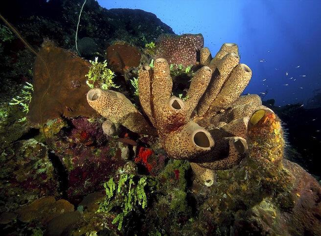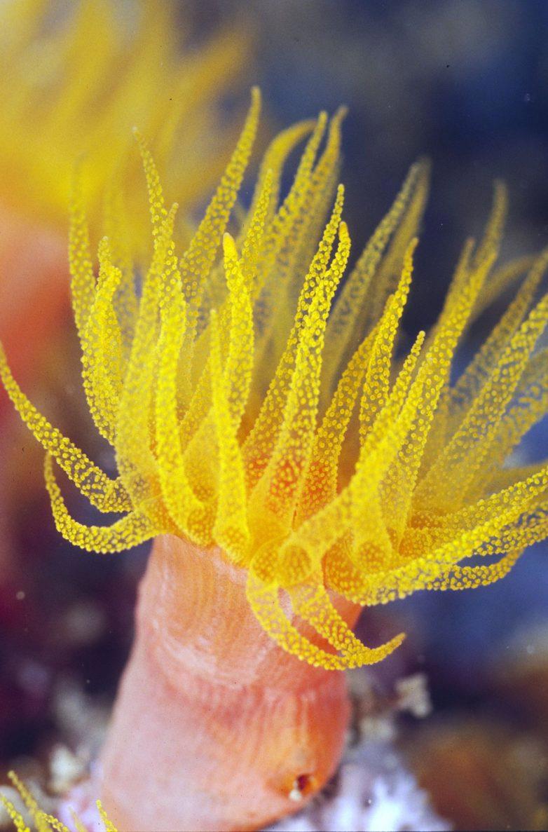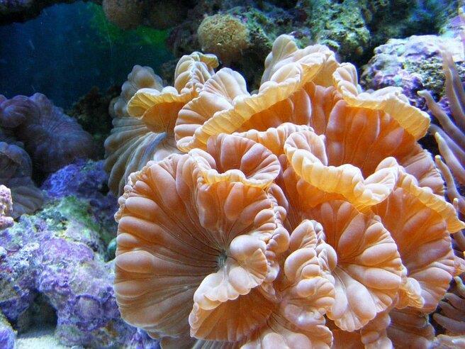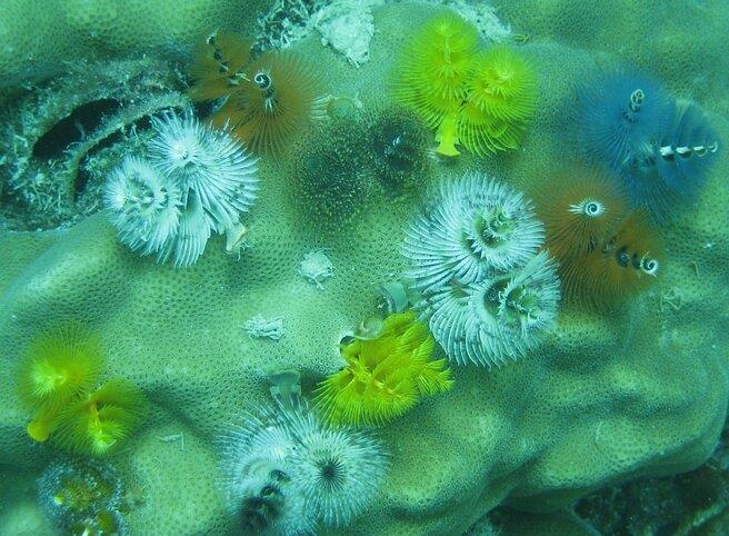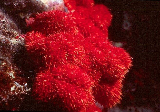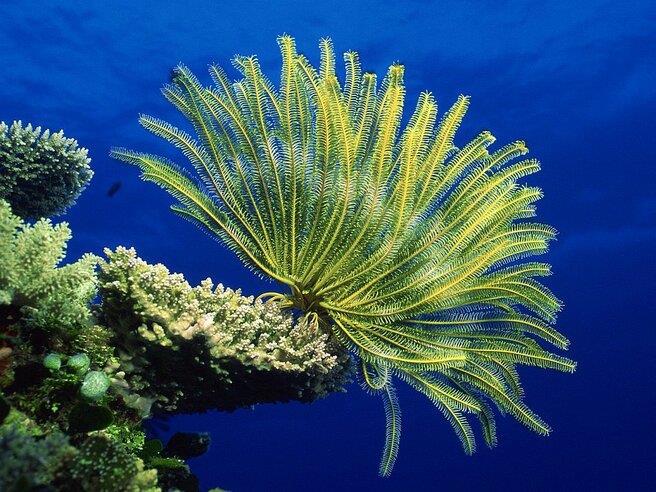 Виды кораллов включают важных строителей рифов, которые населяют тропические океаны и выделяют карбонат кальция, образуя твердый скелет.