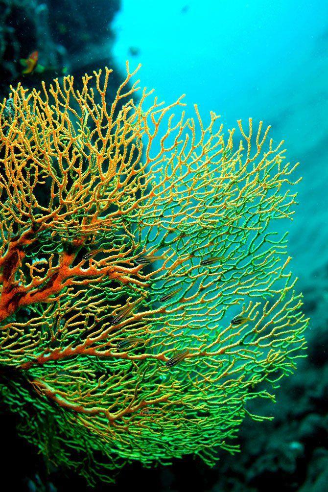 Красные кораллы-Горгонарии , названные в честь Медузы Горгоны.