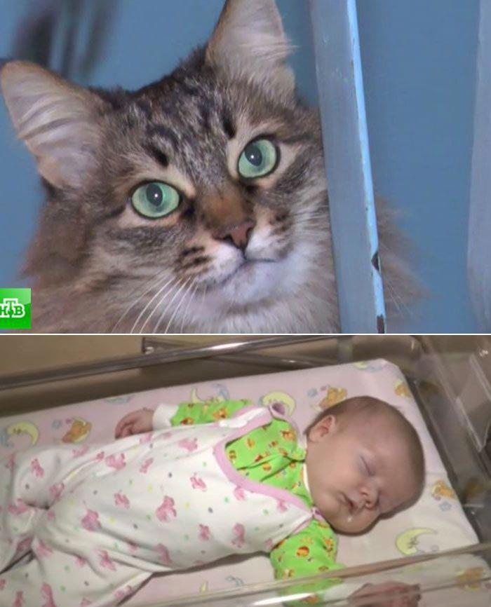Жестокие родители не просто отделались от грудного младенца, а подкинули его в коробку, где жила кошка. Поняв, что если не она, то уже никто другой не сможет спасти малыша, кошка легла на ребенка и несколько часов согревала его своим теплом, громко мяукая и призывая таким образом людей на помощь.