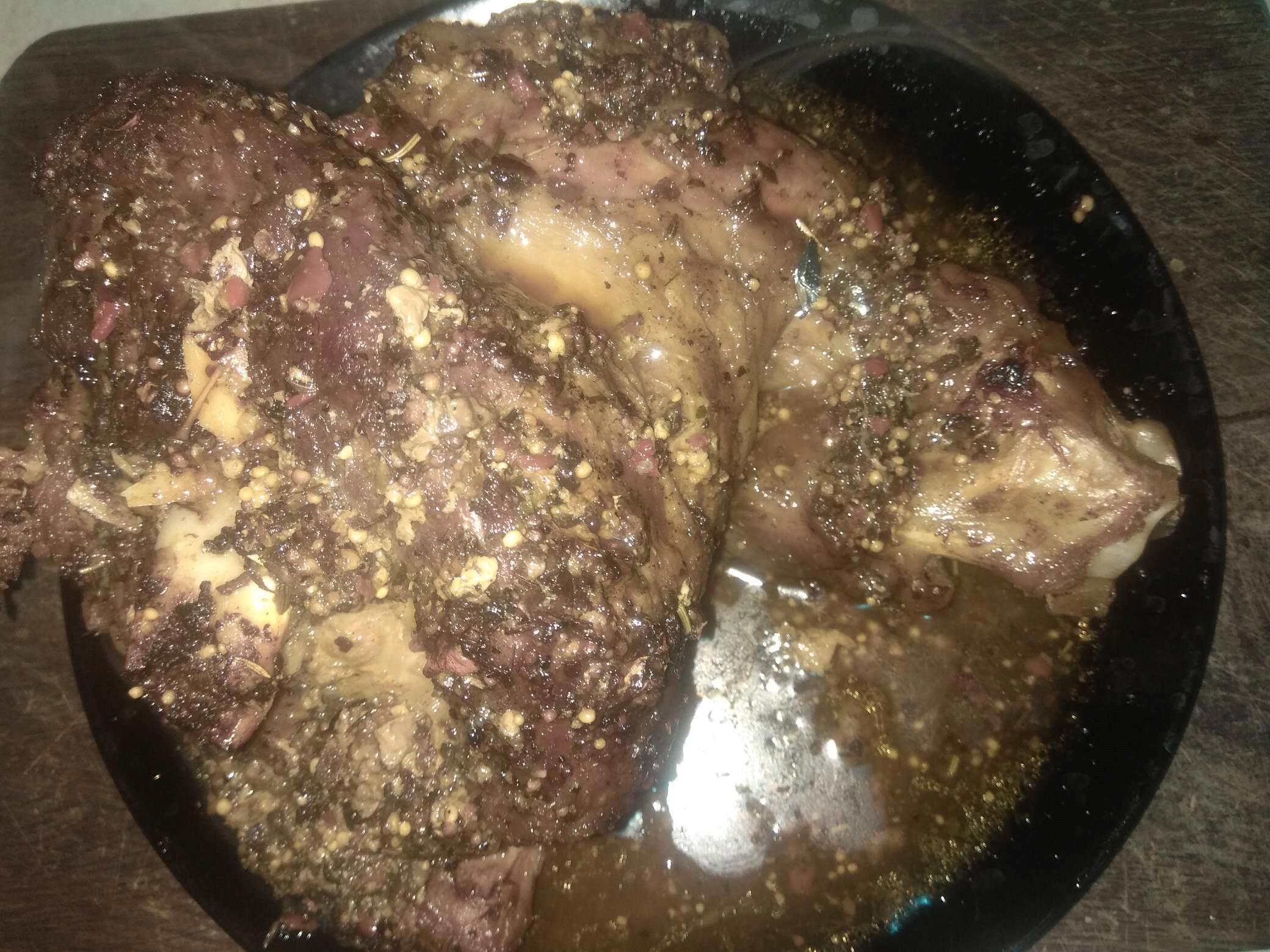 Приберег кабанью ножку с последней охоты, думал соберу всех близких... Ан нет, нет рядом почти никого. Своих отправил, другие тоже разъехались подальше от беды. А холодильник надо освобождать от мяса на случай если отключат свет, что очень вероятно. Запек ножку, нашлась капелька ирландского...