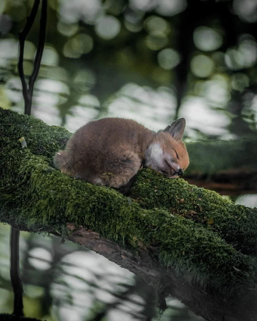 Как же удобно спать на мягком мху, особенно в безопасности, на верхотуре. Франция.