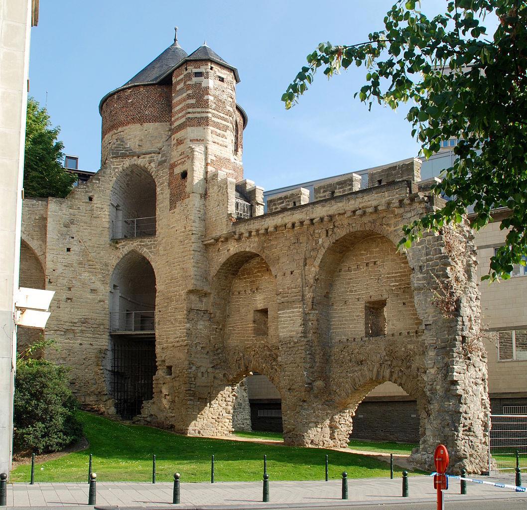 Остатки средневековой крепостной стены и башни Аннессенс в Брюсселе.