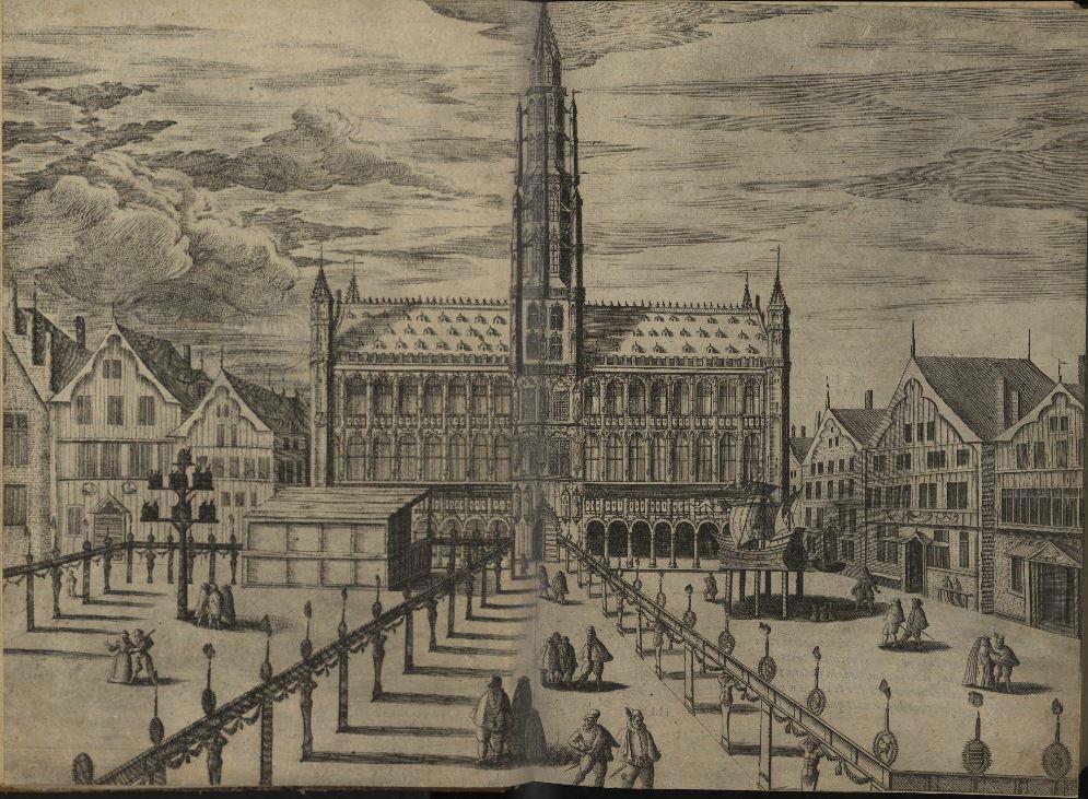 Jan Mommaert. Вид на Гран-Плас и ратушу в Брюсселе. 1594 год.
