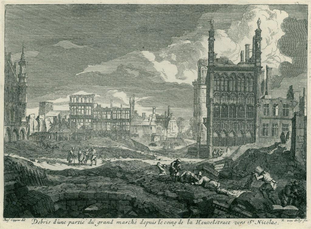 Richard van Orley и Augustin Coppens. Руины Гран-Плас в Брюсселе. Гравюра 1695 года.