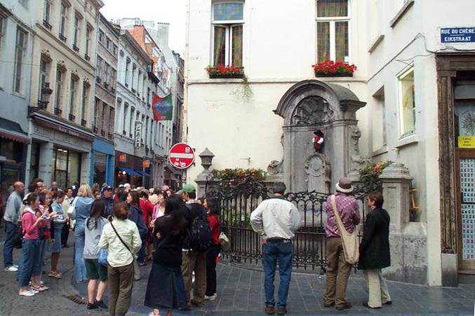 Самым известным символом Брюсселя является писающий мальчик. Это бронзовая статуя-фонтан, которая стоит на углу Rue de l'Étuve / Stoofstraat и Rue du Chêne / Eikstraat как минимум с середины XV века. Свой нынешний вид статуя приобрела в 1619 году и с тех пор выглядит так, как задумал скульптор Жером Дюкенуа Старший. Высота этой статуи лишь 61 см, и если не знать, куда смотреть — то её можно просто не заметить.