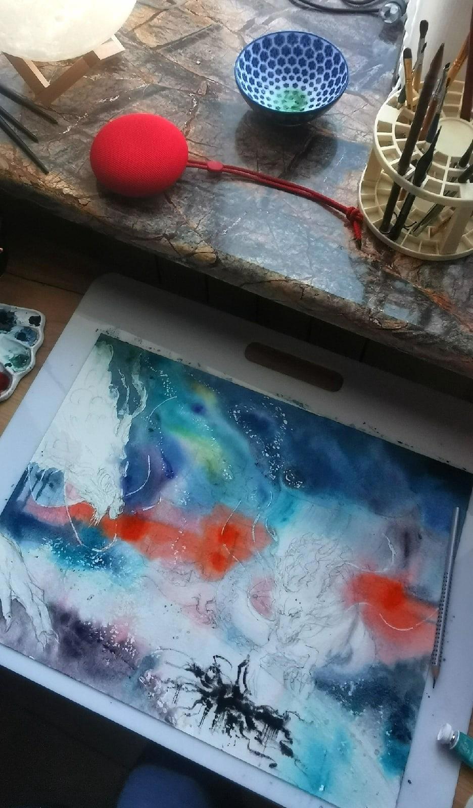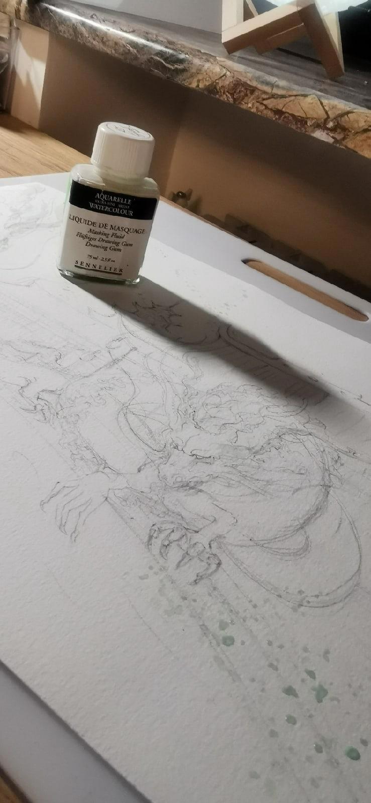 Эскиз готов, далее работа с акварельной бумагой. Для заказов я использую только бумагу очень хорошего качества. Но даже она не терпит большого количества стираний.