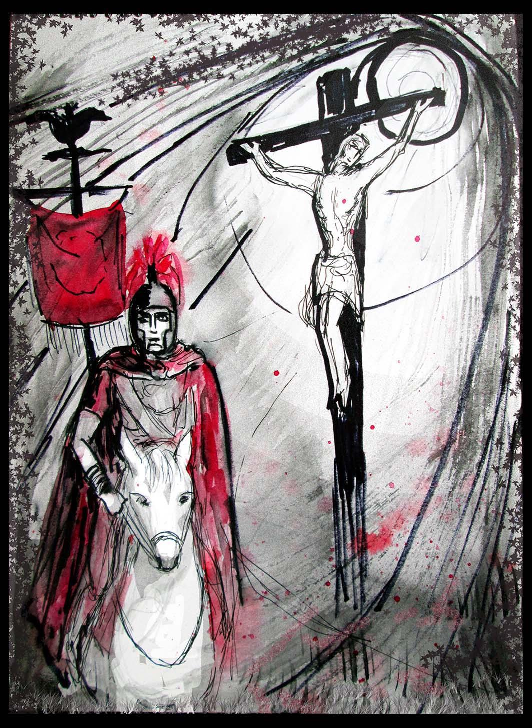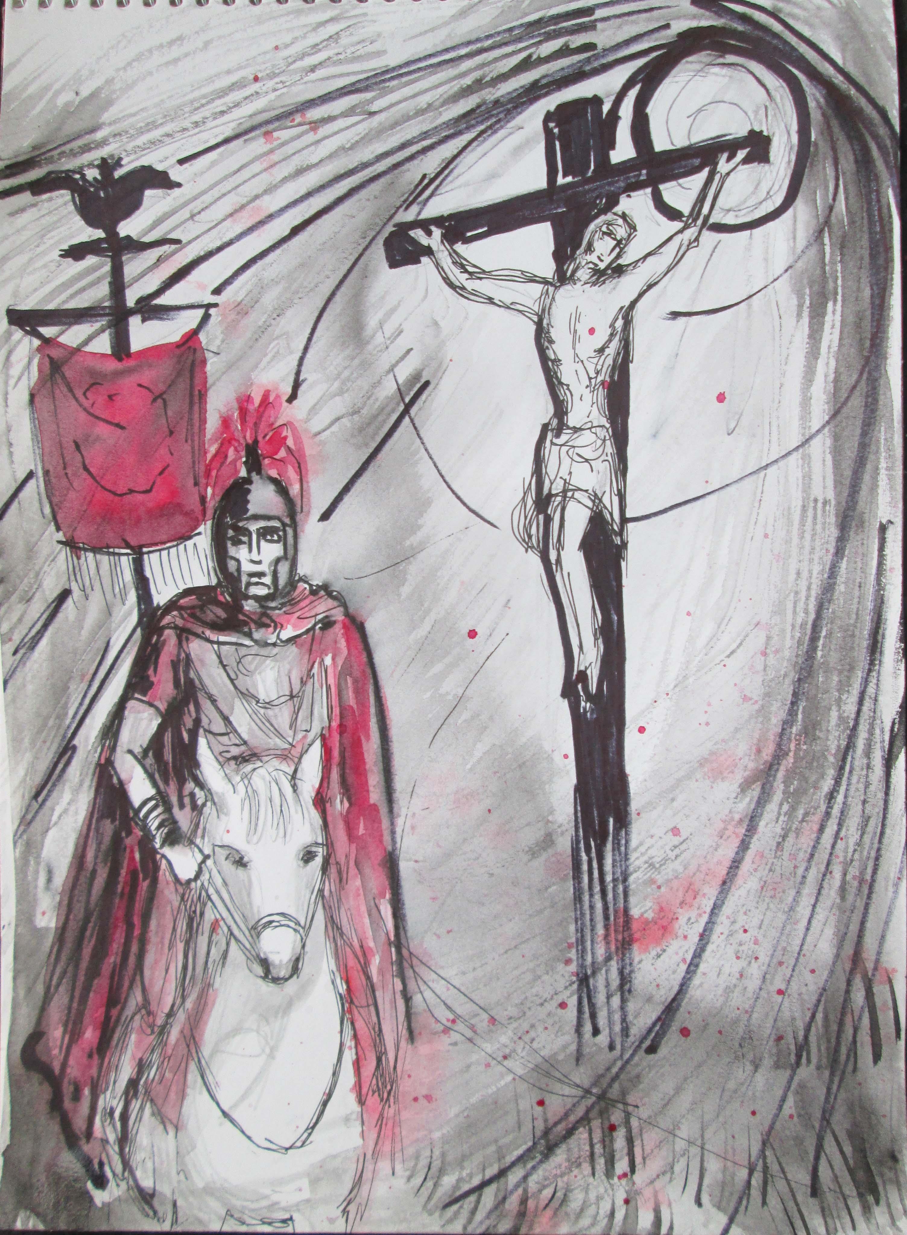 Сюжет, достаточно часто встречаемый в кино и живописи. Поэтому подобрать референсы с римскими воинами и казненными было не сложно.