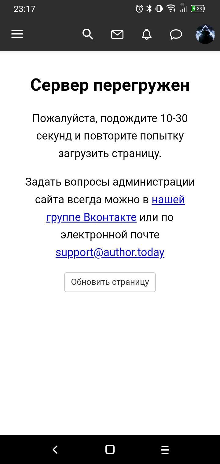 Автор: Максим ВолковСорян, у меня почему-то даже не открывается произведение в настройках сегодня. Редактировать вщ никак не могу. Пока готовы следующие 4 главы, но выложить их не могу. Не прогружается обложка и статистика даже.