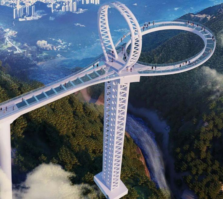 Гуаньдонг. Высшая точка круглого прозрачного моста. Китай.