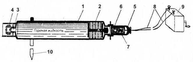 Фугасный поршневой огнемет. Конструктивно довольно простое оружие. Пороховые газы создают давление для выброса огненной смеси из емкости. На картинки инициация показана с помощи электричества, но можно и по старинки фитилём.