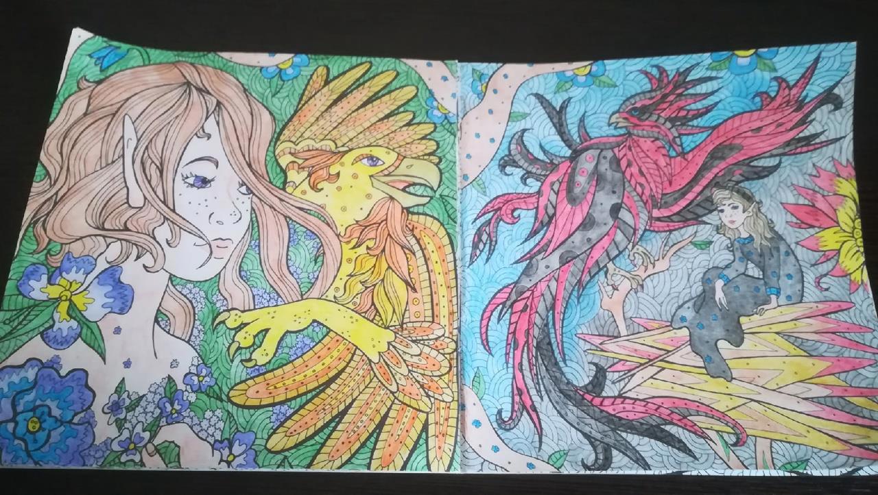 Очень много красивых дев-птиц нашла я в интернете, думаю попробовать нарисовать свою птицу, только пока не знаю какую радости или печали, руки ноют, но буду пытаться) но с раскрасками пока все. Это было нелегко))