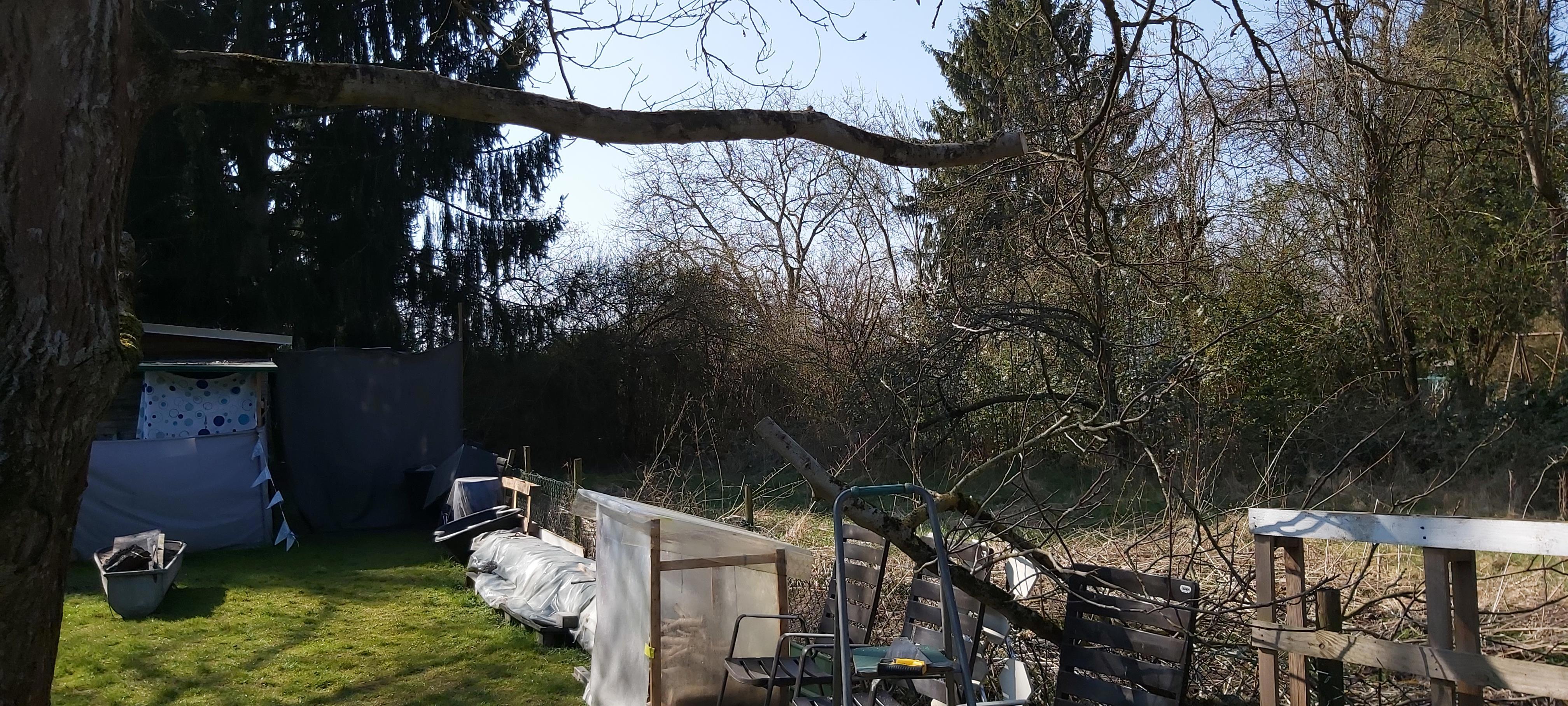 Спилила ветку, а она упала к соседу, оставила пока так, сил нет, чтоб перетащить к себе.