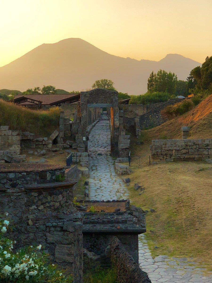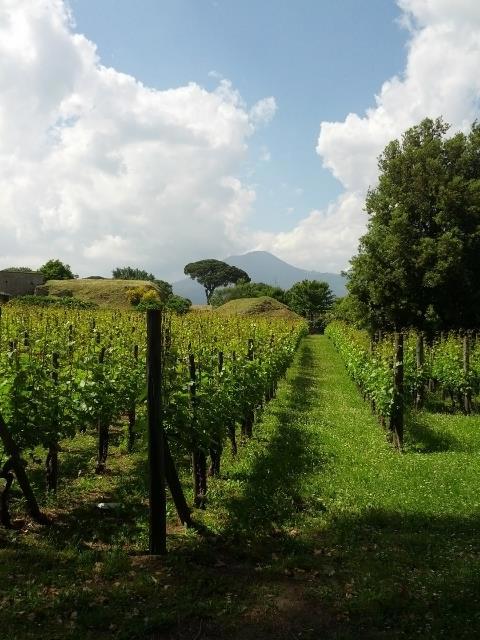 Сегодня здесь богатые виноградники. Вдали виден Везувий.