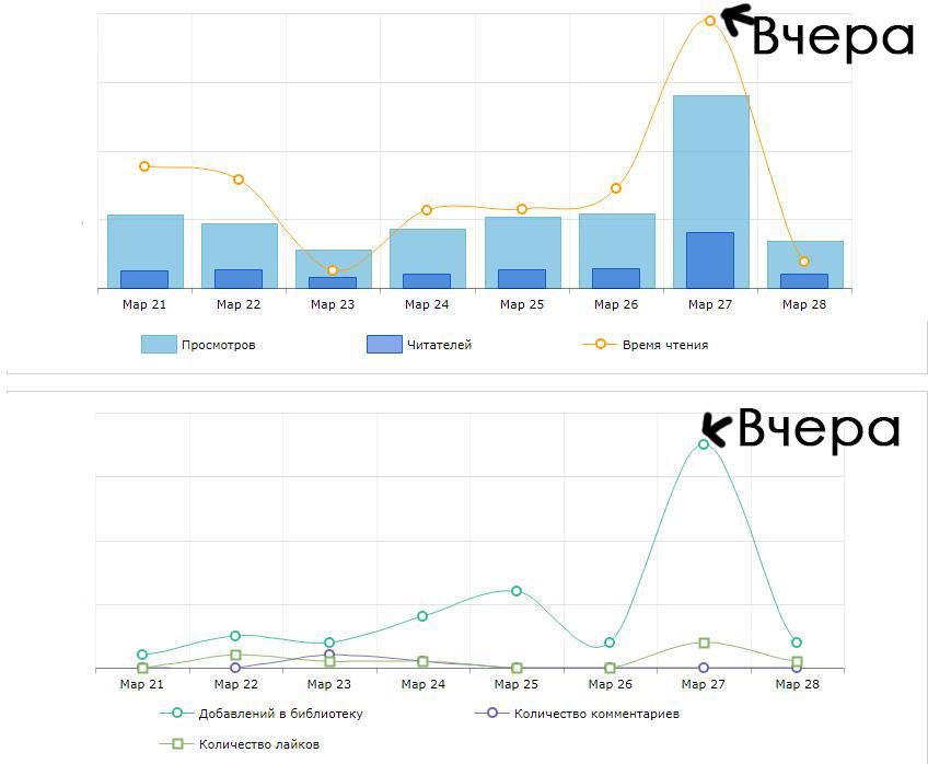 Что-то вчера произошло, что просмотры и библиотеки взлетели раза в три. Хотя, я ничего не писал, не выкладывал, не постил. Не рекламировал вроде...