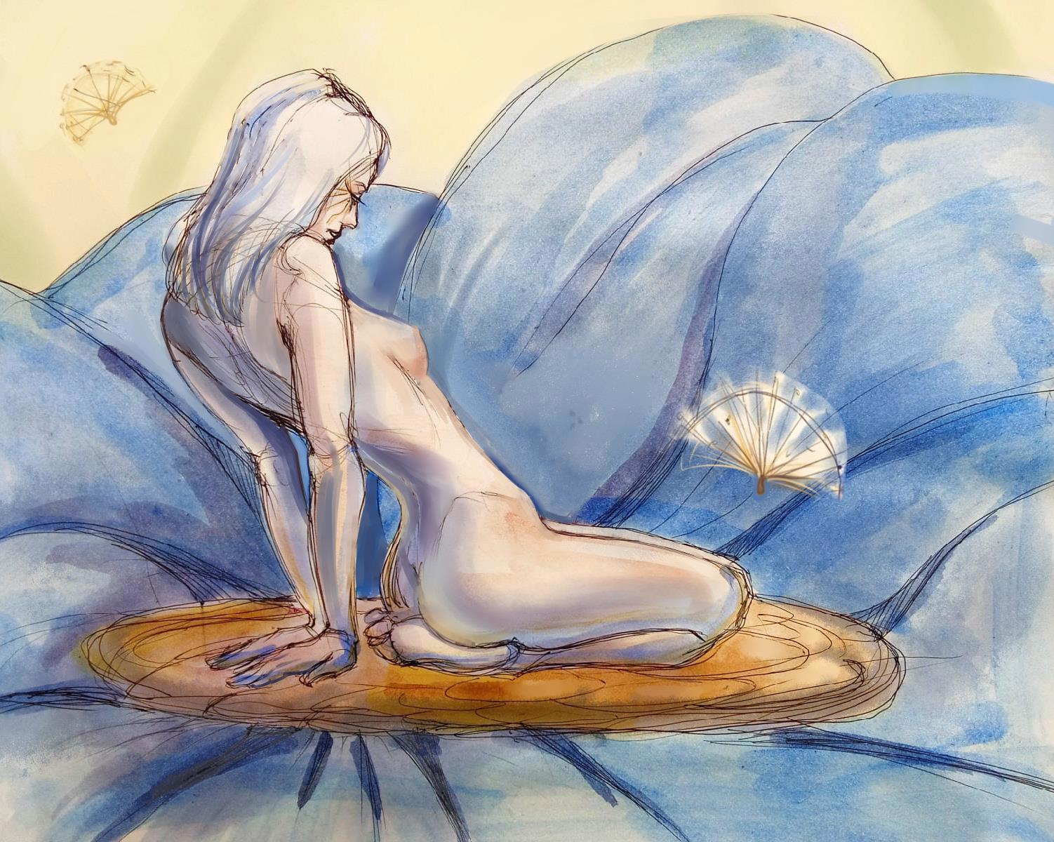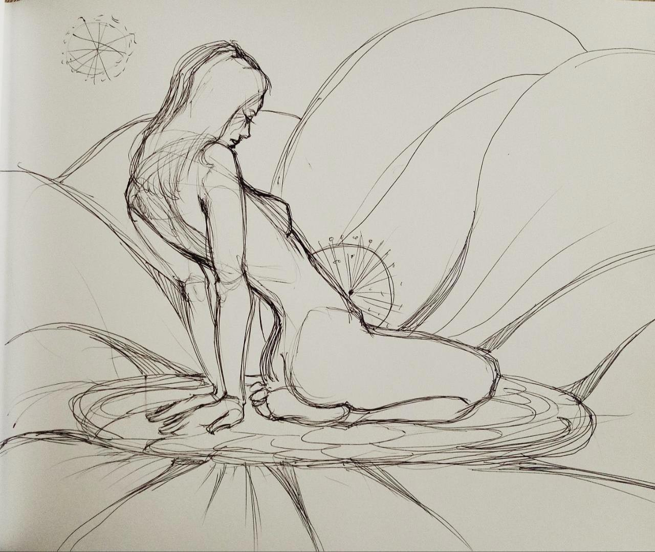 На днях рисовала скетчи в целях тренировки анатомии. Мелькнула искра вдохновения изобразить не просто обнаженную девушку. Как-то так :)