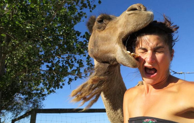 Воспитанный верблюд на парковке.
