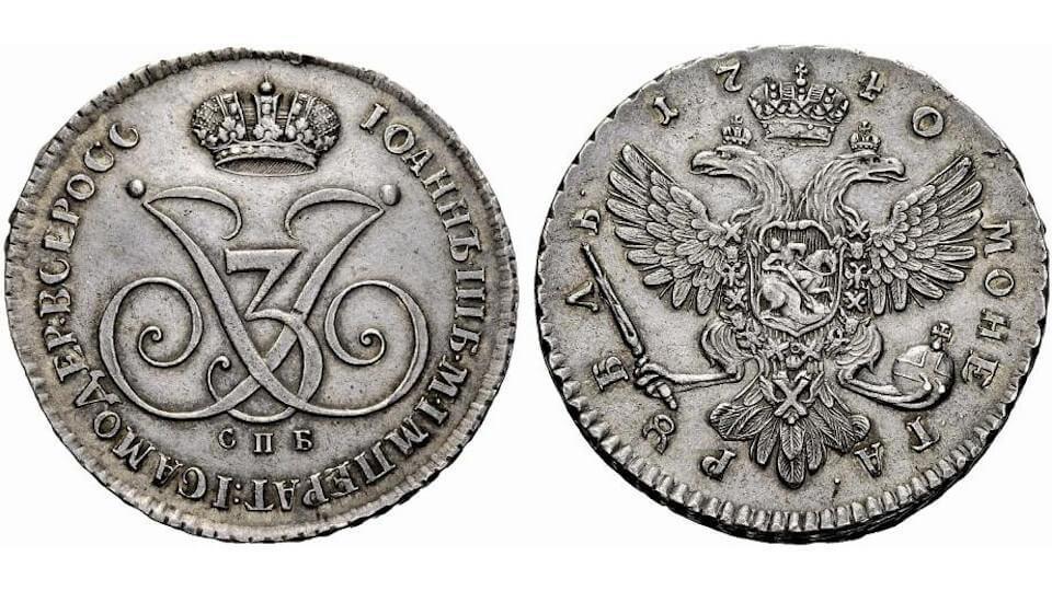 1. Пробный серебряный рубль царя Иоанна. В 2012 году этот раритет чеканки 1740 года ушел с молотка аукционного дома Sincona за 4,4 млн долларов. Забавно, что предыдущий владелец раритета купил его за 20 тысяч франков в 1968 году. Попаданцам в Швейцарию на заметку.