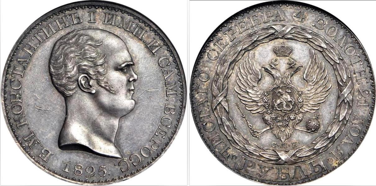 3. Константиновский рубль (серебро). В 2021 году совладелец нефтяной компании Лукойл Вагит Аликперов приобрёл его за 2,6 млн долларов США.