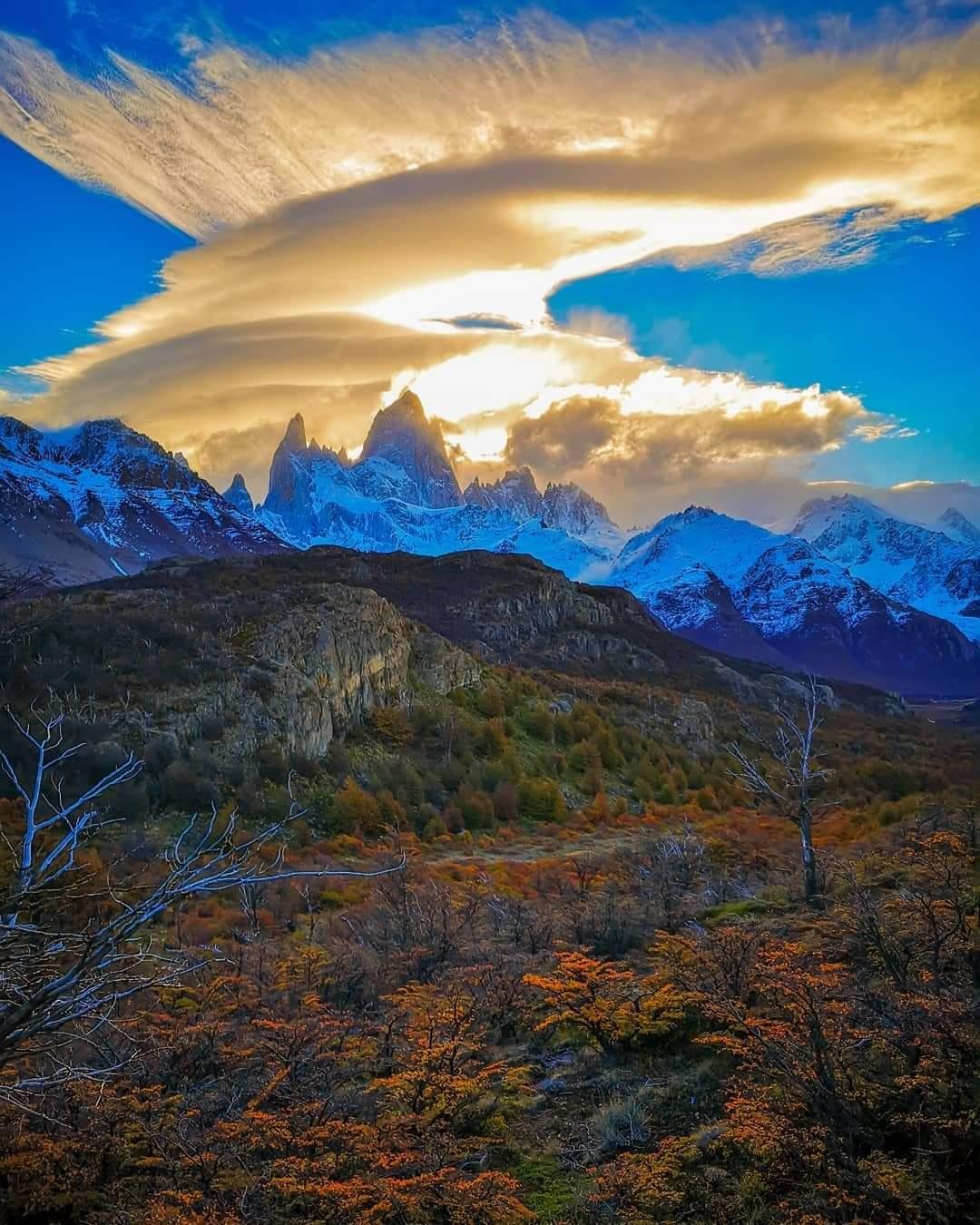 Необычные облака над красивыми горами.