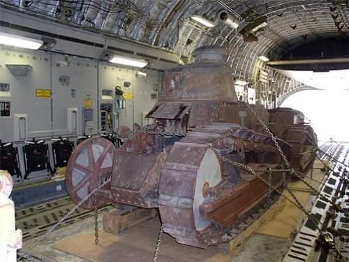 И вот самое интересное и необычное: это два старичка "ФТ-17", оба давно отдыхали на Кабульской свалке металлолома, пока к ним не пригляделись работники музея в Абердине, США. На фото оба танка находятся в грузовом отсеке самолёта ВВС США С-17 "Глоубмастер 3" и летят из Афганистана в Америку. Такое вот приключение на старости лет. Сейчас ближний на фото танк уже полностью отреставрирован и находится в экспозиции музея...