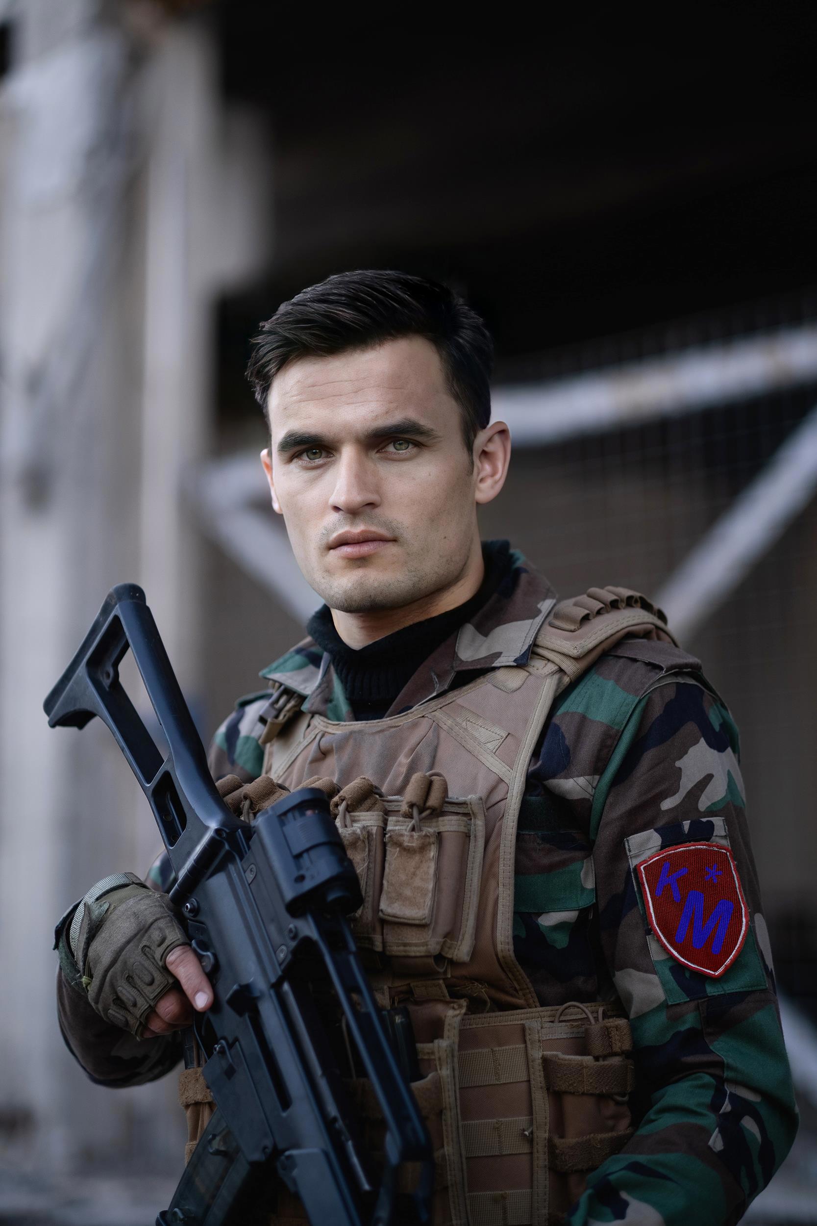 И внезапно, она кое-что заметила. Форма солдат ее насторожила, она явно была не местной. Особенно глаз зацеплял красный шеврон с синими буквами „КМ“.