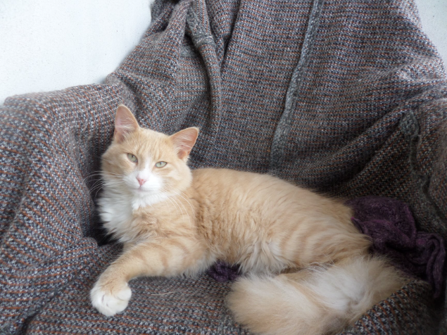Славный такой подросток, месяцев 2.5-3, персиковый и пушистый, он быстро со всеми передружился. Очень ласковый, покладистый, застенчивый. Ко всем относится с уважением. Со всеми дружит. Чудо не кот. Да и остальная шерстяная гвардия очень скоро приняла его в свои ряды. Как тут и был.