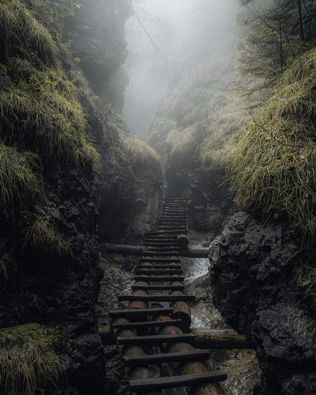 Мох на стене растет только в том месте, где солнце достигает его межлу домами.