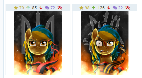 Автор: Хеллфайр ФайрГулял сегодня по Дерпибуру - это такой сайт-галерея нашего фэндома - и заметил вот это. Арты относились ко времени событий 2014-го года, более "свежий" арт сайт сдвигает влево, и, учитывая, что читаем мы с вами слева направо, выглядит всё это ну очень пророчески.