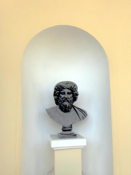 В нишах галереи вдоль наружной стены дворца красовались бюсты всевозможных великих мужей. Не то цезарей, не то учёных, не то философов.
