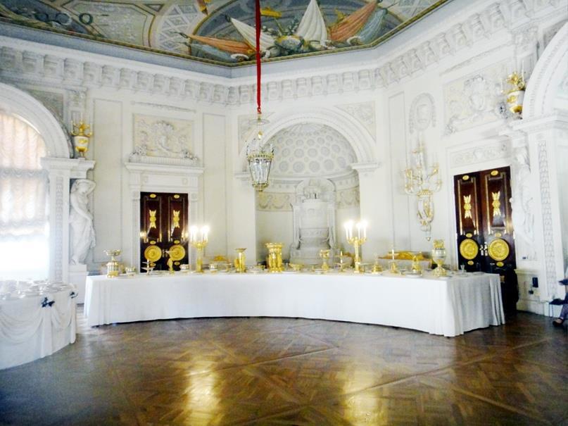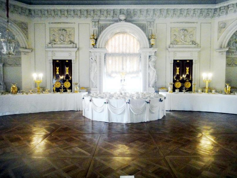 Здесь проходили самые торжественные приёмы. Правда, изначально помещение задумывалось, как большая парадная столовая. Но пока заканчивалась отделка, Павел, наконец, стал из наследника императором, и возникла нужда в тронном зале.